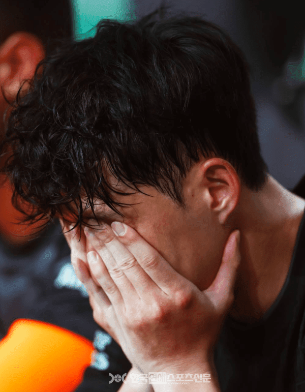 후반 20분 퇴장 후 벤치에서 홀로 눈물을 훔치는 손흥민 / 출처-토트넘 공식 인스타그램