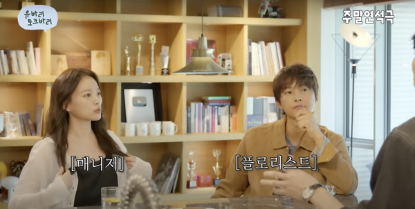 유튜브 채널 '유연석의 주말연석극'에 배우 송중기와 천우희가 출연하여 드라마 '마이유스'에 대해 홍보를 진행하고 있다. /출처-유튜브 채널 '유연석의 주말연석극' 캡처