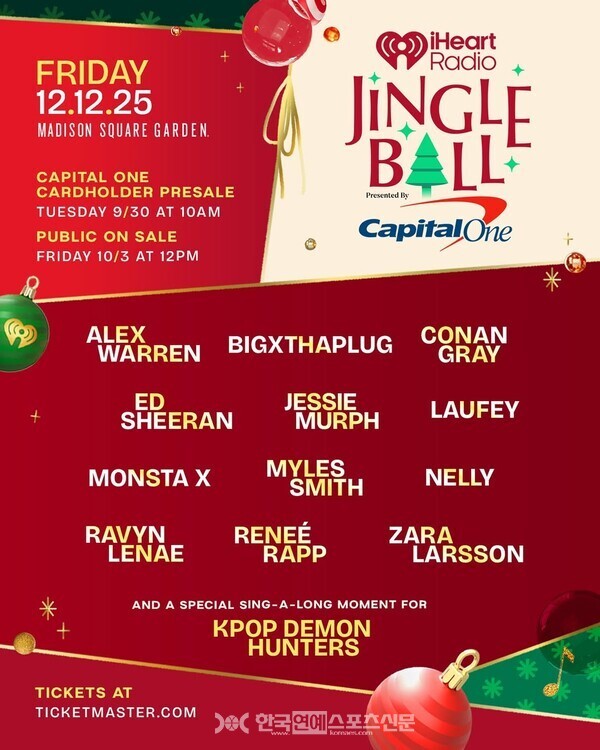 K팝 그룹 몬스타엑스가 다시 한 번 ‘징글볼(Jingle Ball) 투어’ 무대에 오른다. 이번이 통산 네 번째 출연으로, 그룹의 해외 위상과 지속성을 증명하는 무대로 기대를 모은다.