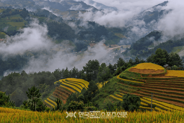 안개가 스며든 산골 마을과 곡선을 따라 흐르는 논, 전통적 농경 방식이 이어지는 저장고 풍경은 무캉차이가 왜 수확철 최고의 여행지로 손꼽히는지 보여준다. 인간이 만든 계단식 경작지와 산악 자연환경이 교차하며 독특한 가을 정취를 만들어낸다.
