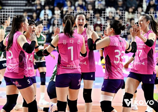 기뻐하는 흥국생명 선수들. (KOVO 제공)