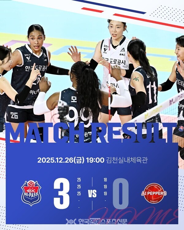 2연승을 기록한 도로공사는 시즌 전적 15승 3패, 승점 40을 쌓으며 2위 현대건설(승점 36)과의 격차를 벌렸다. 반면 페퍼는 단 한 세트도 20점 고지를 넘지 못한 채 9연패에 빠졌고, 6승 11패(승점 17)로 6위에 머물렀다.