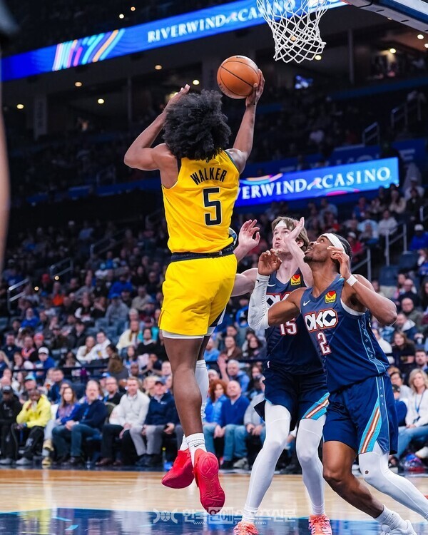 인디애나는 23일(한국시간) 미국 오클라호마시티 페이컴 센터에서 열린 2025-2026 NBA 정규리그 원정 경기에서 OKC를 117-114로 제압했다.