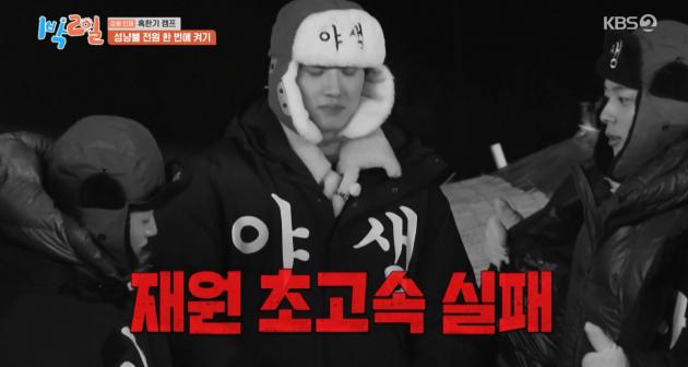 뉴스1에 따르면, 25일 방송된 KBS 2TV '1박 2일'에서는 강원도 인제에서 펼쳐진 혹한기 캠프 현장이 공개됐다. 영하의 날씨로 베이스캠프가 꽁꽁 얼어붙은 가운데, 멤버들은 난관을 타개하기 위해 '전원 성냥불 켜기' 미션에 도전했다.