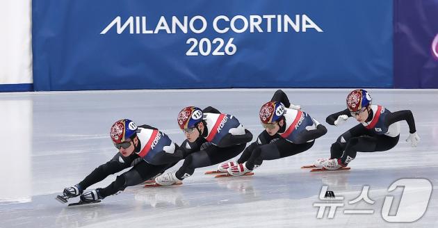 2026 밀라노·코르티나담페초 동계올림픽 개막을 사흘 앞둔 3일(현지시간) 이탈리아 밀라노 아이스스케이팅 아레나에서 쇼트트랙 최민정(맨 뒤쪽)이 훈련을 하고 있다. 2026.2.4/뉴스1 ⓒ News1 김성진 기자
