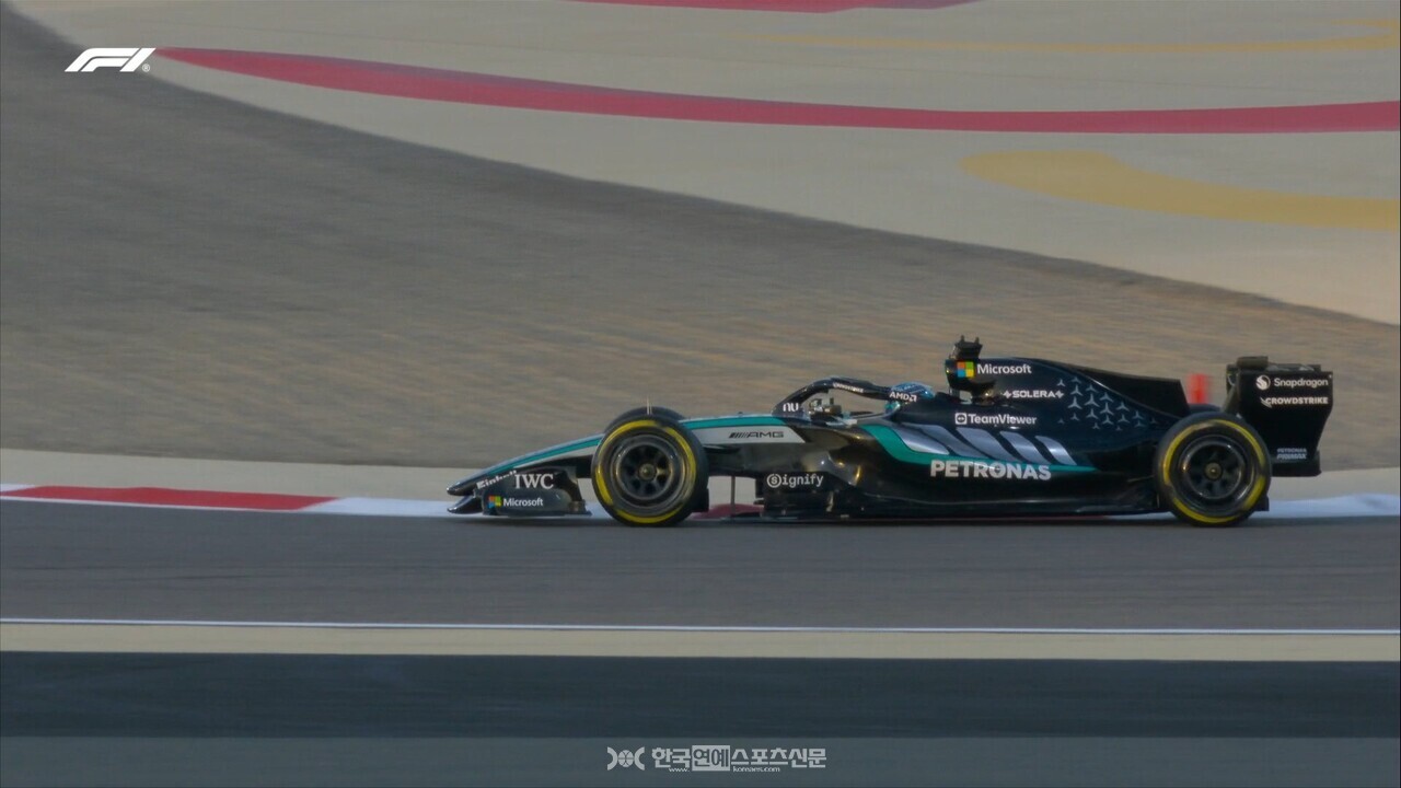 2026년 F1 파워유닛 규정의 대대적인 변화를 앞두고, 메르세데스가 바레인 프리시즌 테스트 첫날부터 압도적인 기술력을 과시했다. 18일(현지시간) 바레인 인터내셔널 서킷에서 열린 2차 테스트 1일차 일정에서 메르세데스의 조지 러셀은 1분 33초 459를 기록하며 전체 1위에 올랐다. 세션 종료 직전까지 맥라렌의 오스카 피아스트리가 선두를 지켰으나, 러셀이 종료 30분 전 0.01초 차이로 기록을 경신하며 기선을 제압했다.