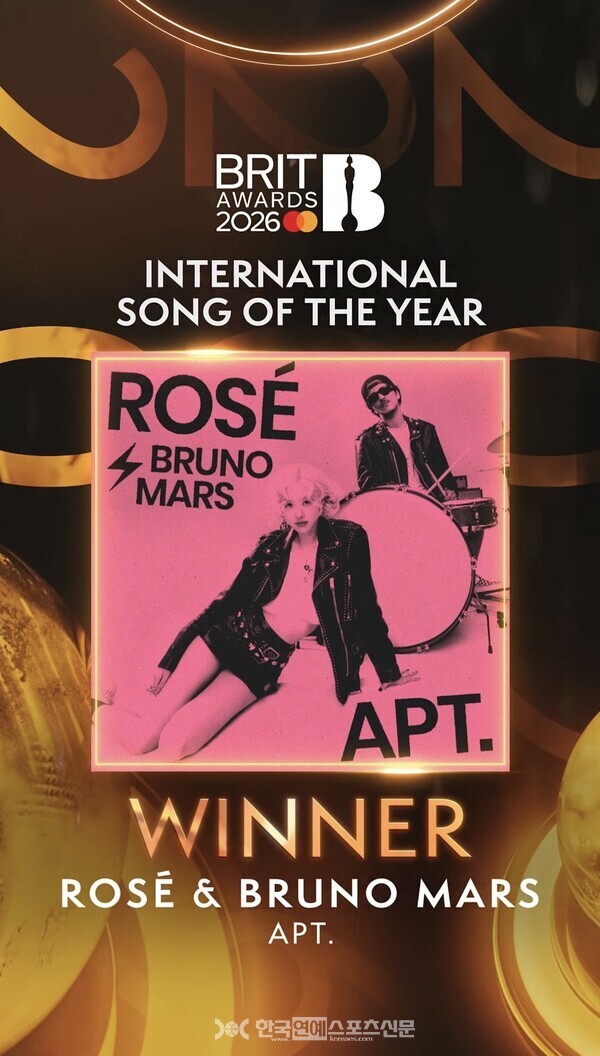 로제는 지난 28일(현지 시간) 영국 맨체스터에서 개최된 ‘제46회 브릿 어워즈 2026’에서 ‘올해의 인터내셔널 송’ 부문 수상자로 호명되었다.