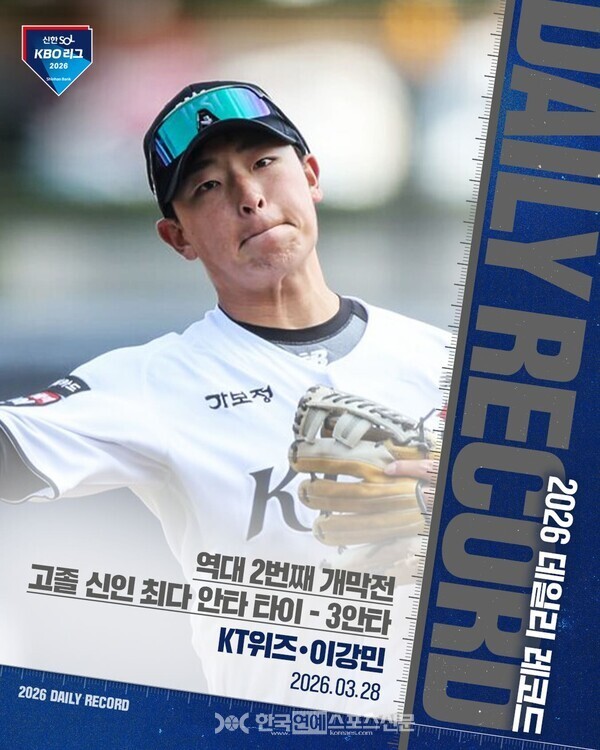 이강민은 LG전에 9번 타자 유격수로 출전해 5타수 3안타 2타점 1득점을 기록했다. 1회초 2사 1, 2루에서 LG 선발 요니 치리노스를 상대로 2타점 적시 2루타를 날리며 포문을 열었고, 3회초 좌전 안타, 7회초 중전 안타를 추가했다. 고졸 신인의 개막전 3안타는 1996년 장성호 이후 30년 만이다. 같은 날 오재원까지 이 대열에 합류하며 유신고 동기 두 명이 동시에 역사에 이름을 새겼다. kt는 LG를 11-7로 꺾었다.