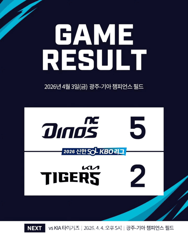 NC, KIA 경기결과 5-2 / 출처 - NC 다이노스 인스타그램