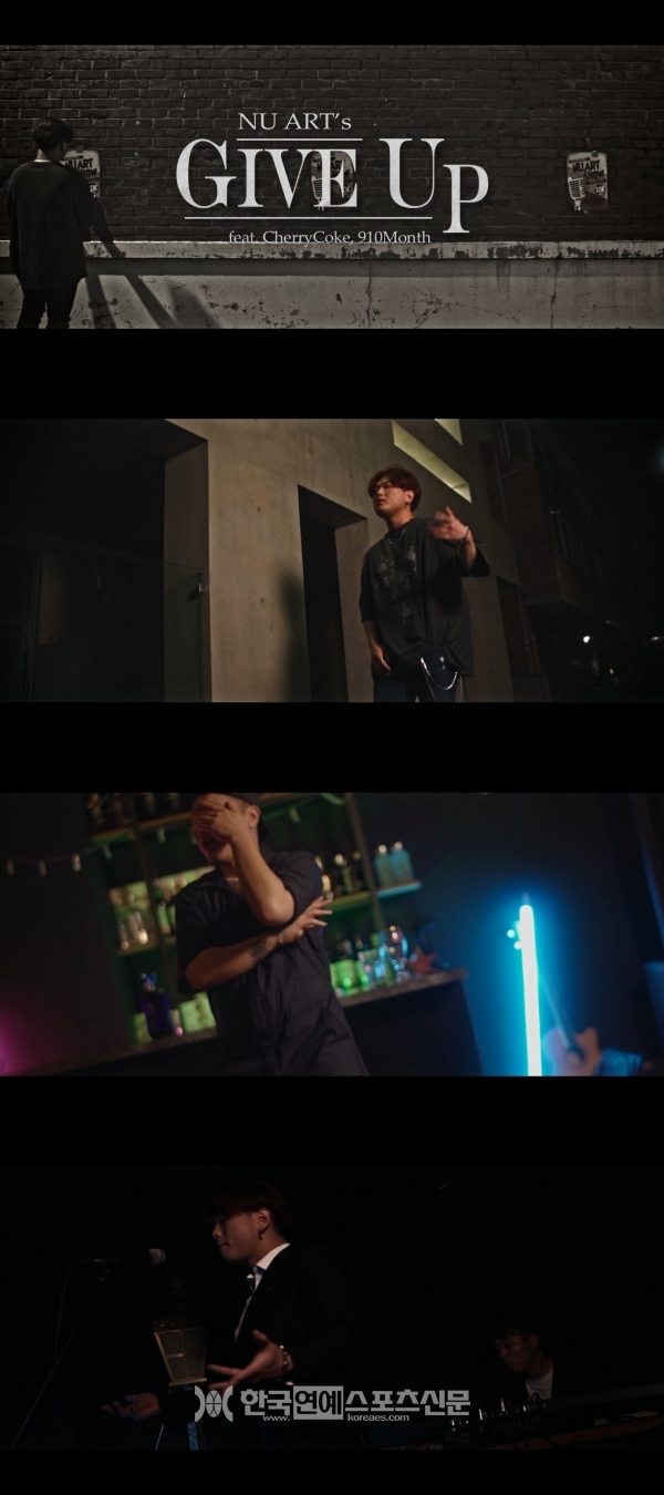 ‘Give Up (Feat. Cherry Coke, 910Month)’의 공식 뮤직비디오는 신예 영상 제작팀 PopRika Studio(파프리카 스튜디오)가에서 제작하였으며, 절망적인 상황에서도 음악 활동에 대한 열정을 계속 이어 나가겠다는 의지를 표현, 뉴아트와 910Month(구십먼스)가 함께 출연하며 감각적인 영상미를 담아냈다.